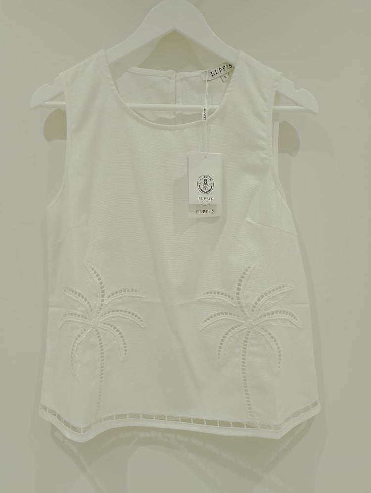 Elppis White Palm Embroided Top